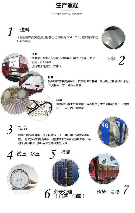 板式換熱器是由一系列具有一定波紋形狀的金屬片疊裝而成的一種新型高效換熱器。各種板片之間形成薄矩形通道,通過板片進(jìn)行熱量交換。板式換熱器是液—液、液—汽進(jìn)行熱交換的理想設(shè)備。它具有換熱效率高、熱損失小、結(jié)構(gòu)緊湊輕巧、占地面積小、安裝清洗方便、應(yīng)用廣泛、使用壽命長等特點(diǎn)。在相同壓力損失情況下,占地面積為管式換熱器的三分之一,熱回收率可高達(dá)90%以上。